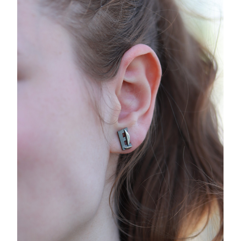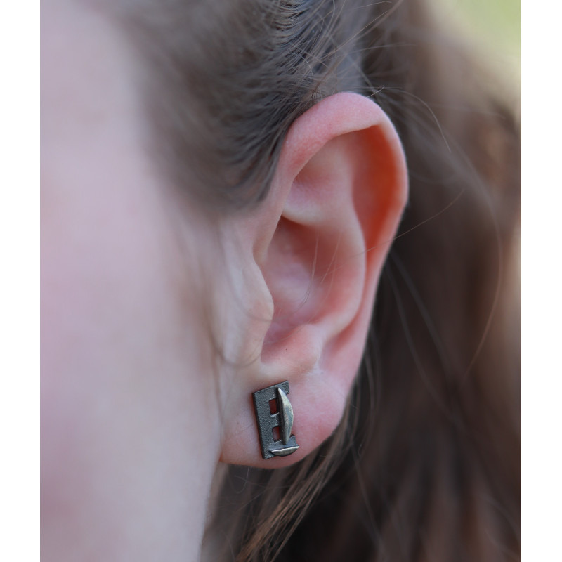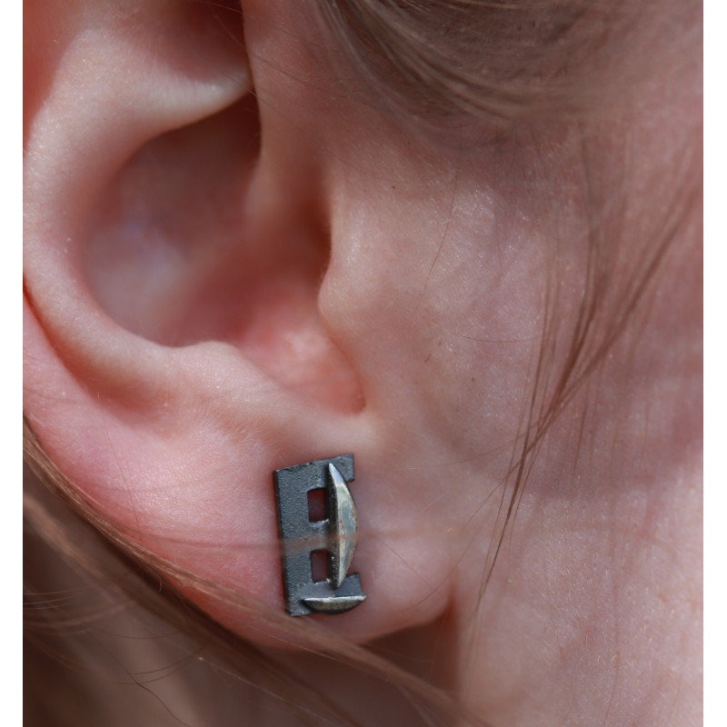 Handgefertigte Ohrstecker aus Schwarz gefärbtem Silber mit Europe-Logo Design