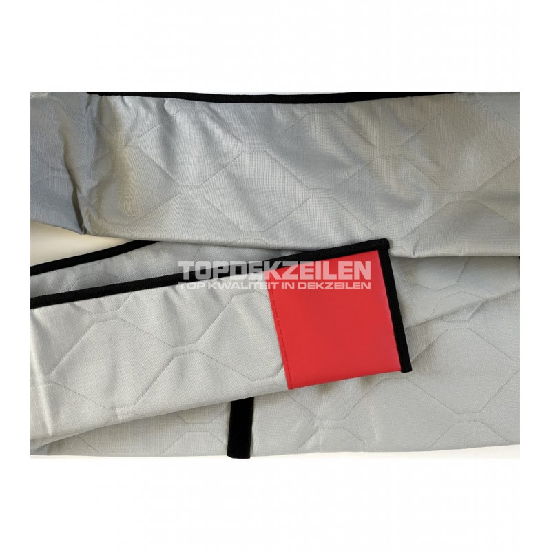 Diese gefütterte Europe Mastvollpersenning umhüllt den gesamten Mast. Der einfache Klettverschluss, ergänzt durch verschiedene Clips, sorgt dafür, dass die Mastabdeckung leicht um den Mast herum angebracht und während des Transports gut fixiert bleibt. Die Spitze der Mastabdeckung ist rot gehalten, zusätzlich ist unten eine zusätzliche rote Klappe angebracht, um die Sichtbarkeit auf der Straße zu verbessern - für mehr Sicherheit!